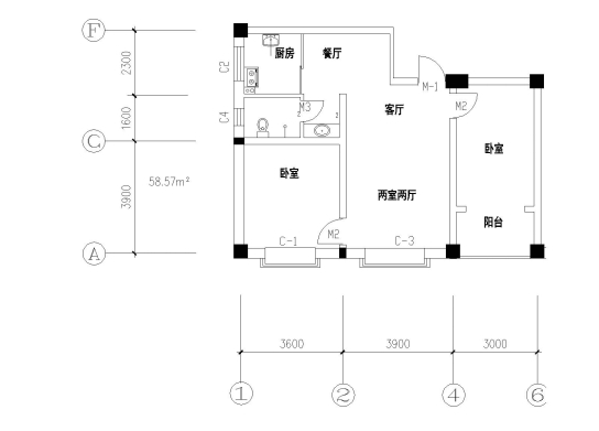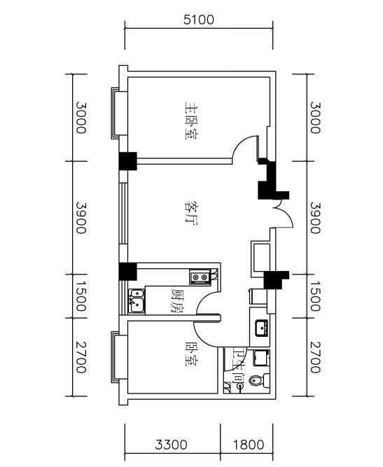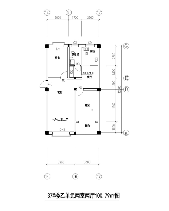 B3戶型100平米二室二廳一廚一衛(wèi)