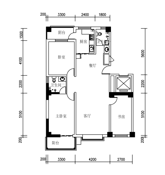 B1戶型94平米二室二廳一廚一衛(wèi)